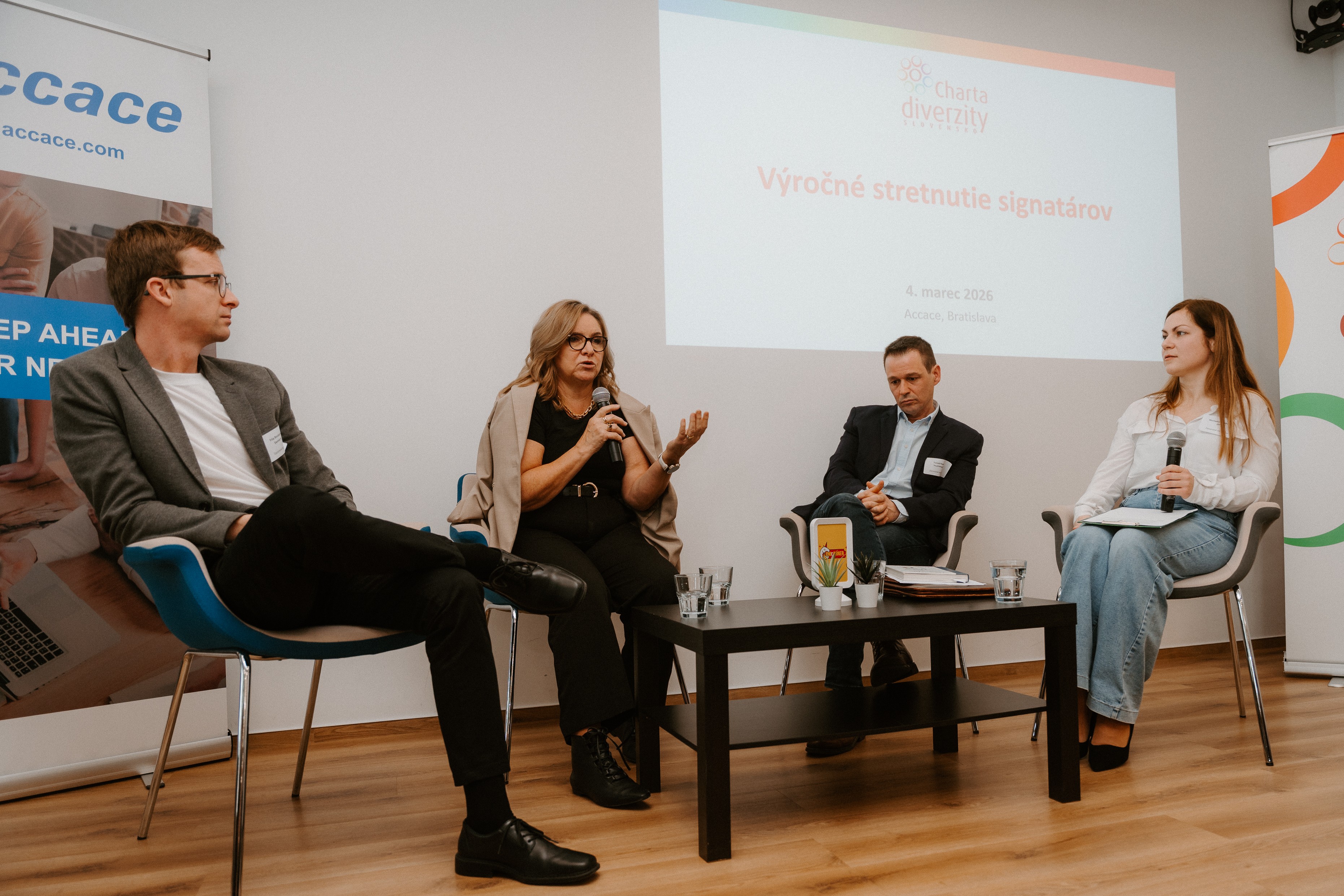 Ako na pracoviskách otvárať témy, ktoré sa dotýkajú mužov, keď o nich často nehovoria ani sami medzi sebou? Výročné stretnutie signatárov Charty diverzity sa 4. marca v priestoroch spoločnosti Accace v Bratislave zameralo na rozmanité témy súvisiace s podporou inklúzie na pracovisku – od merania DEI, cez psychologické bezpečie až po podporu rodovej rovnosti prostredníctvom väčšieho zaangažovania mužov.